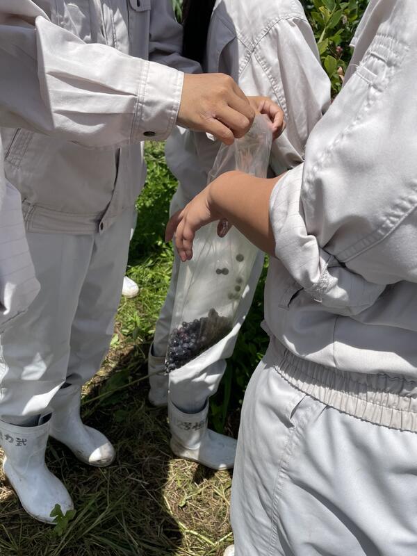 10日(月)にあさぎり町にある蓑毛ブルーベリー農園にて販売用ブルーベリージャムの原料となるブルーベリーの収穫を行いました食品科学科では、野菜や果物等栽培管理にふれる機会が少ないことから、以前からいちごの栽培管理・収穫に続いてこのうような体験を授業の中で行っています