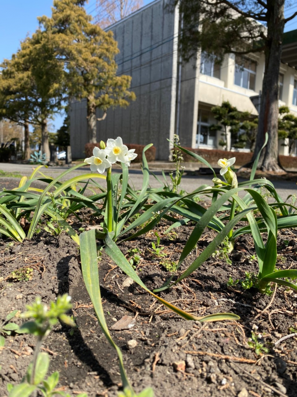 最近、日中が暖かくなったおかげか、いろんな場所で春を感じることができるようになりました。本校でも梅や水仙の花がチラホラと咲き始めました。水仙の花は昨年の11月に3年生が球根の植えつけから行ったものです。3年生が卒業するタイミングで花が咲いたので、水仙が3年生の卒業を祝福してくれているのかな、と勝手に思いました。