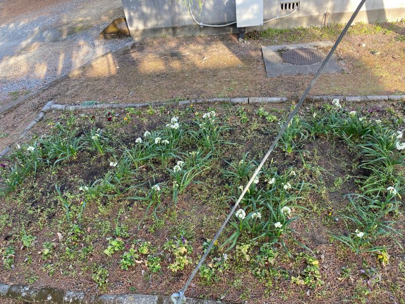 ③デザイン室側に植えつけていた水仙の花は、けっこう咲いていました。