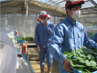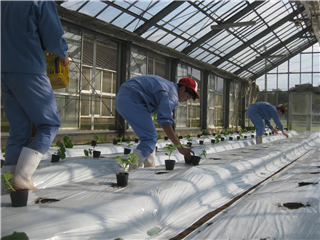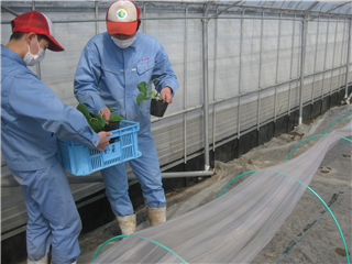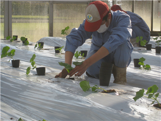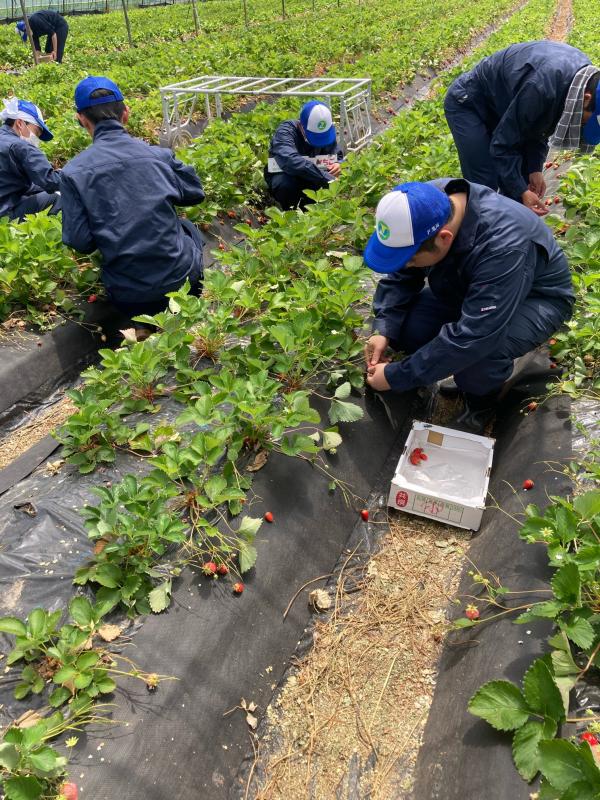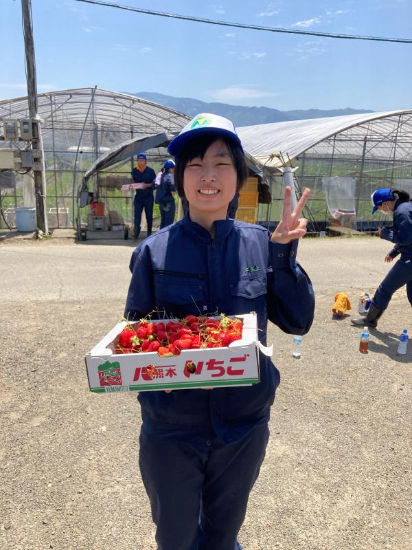 あさぎり町にある市岡様のイチゴ農園にてイチゴの収穫実習を行いました。3月にはイチゴ苗用のポット作りを経験させていただき、それに続く実習となります。