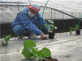 本日2月24日に、肥後グリーンメロンの定植を行いました。ここ数日はとても温かく、過ごしやすい日々でしたが、植物には暑すぎた?順調に成長し、無事定植を迎えました。