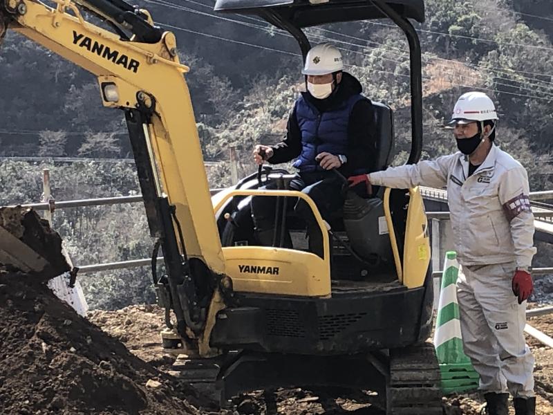 小型のバックホウ体験をさせて頂きました。初めての体験でしたが上手に操作出来ていました!
