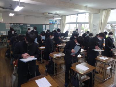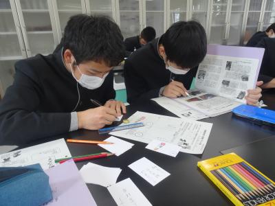 2月26日(金)、初任の野﨑先生が、1年普通科の生徒を対象に科目「現代社会」の研究授業を行いました。