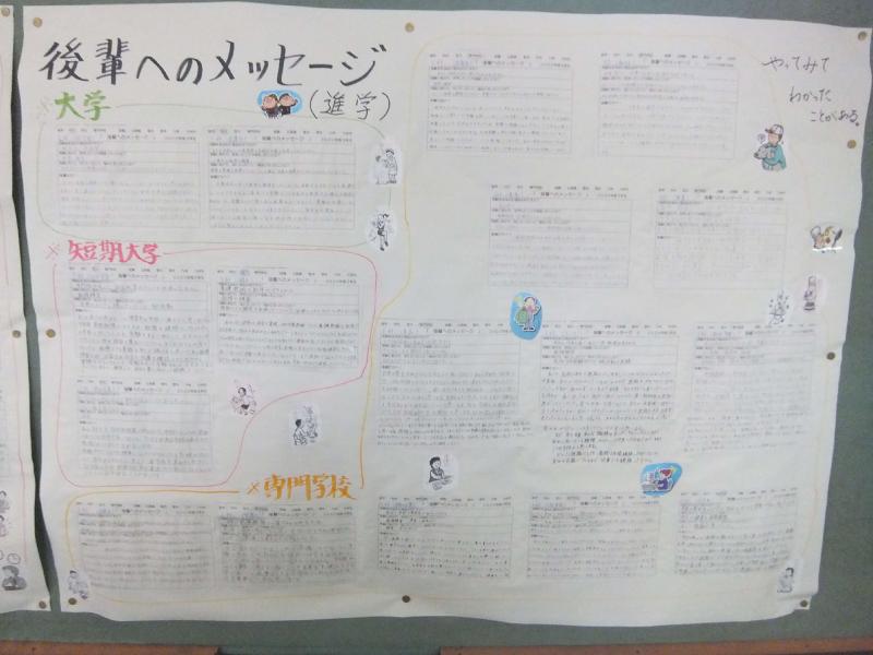 生徒昇降口に、この度卒業する3年生から後輩へのメッセージが掲示してあります。