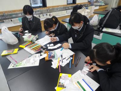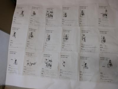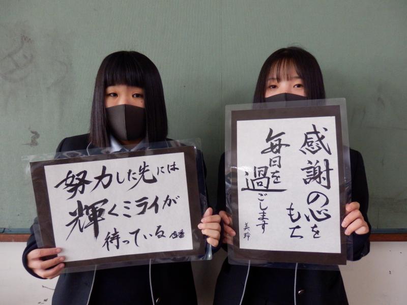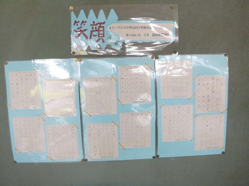 2年生の国語表現を選択している生徒が笑顔をテーマに40文字以内の手紙を書きました。