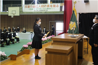 卒業生代表答辞 保護者・先生方・在校生へ向け、時に涙をこらえ立派に思いを述べてくれました。