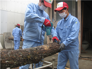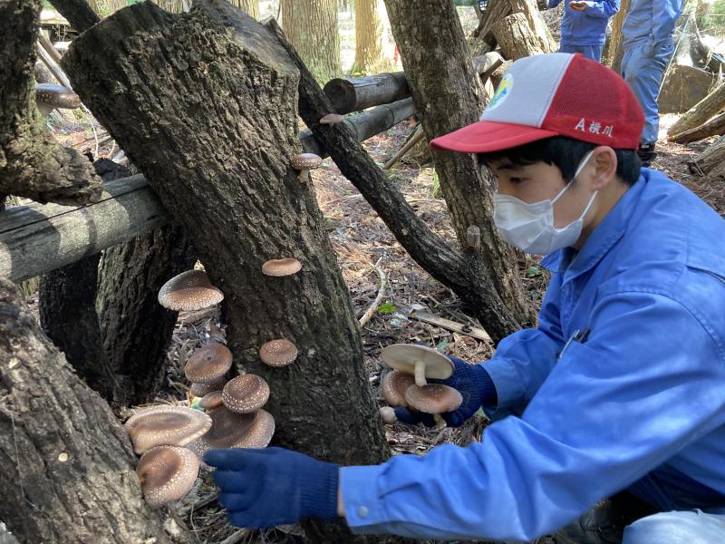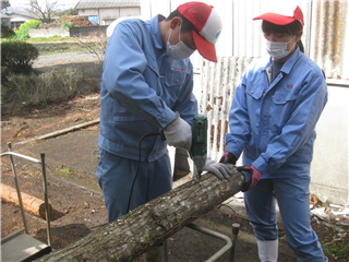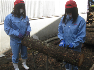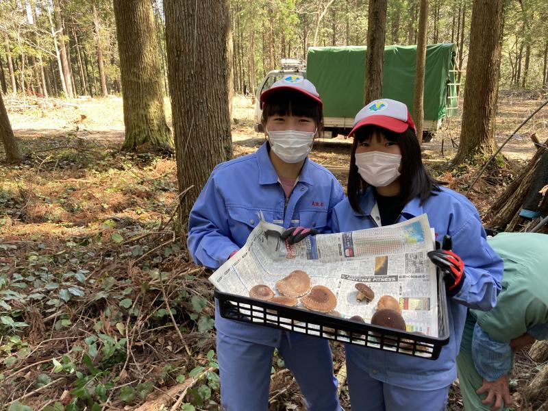 3月2日(火)総合選択の授業にてシイタケの駒打ちを行いました。本校演習林で11月頃に伐採したクヌギの原木を使用します。