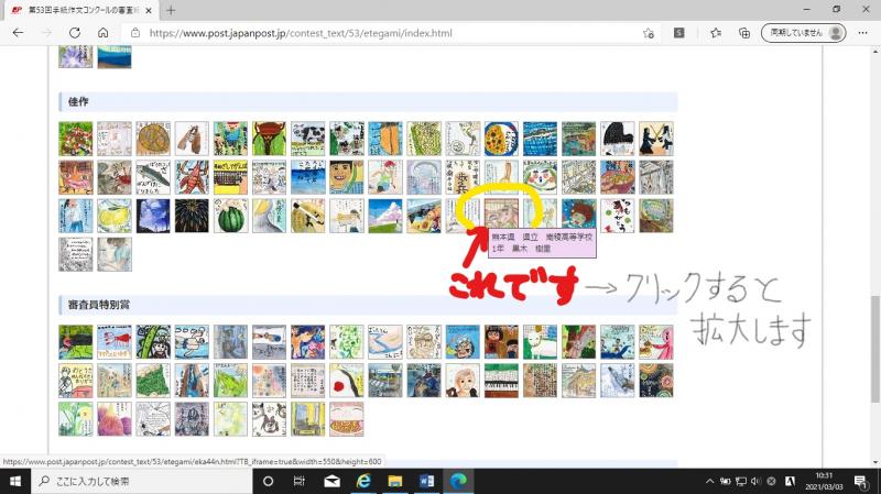 (作品にカーソルを合わせると学校名と名前が表示されます。)
