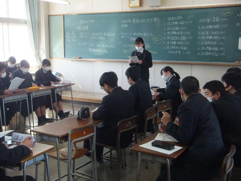 3月3日(水)、普通科1年生が「球磨地域学」の授業の中で、ディベート大会を開催しました。