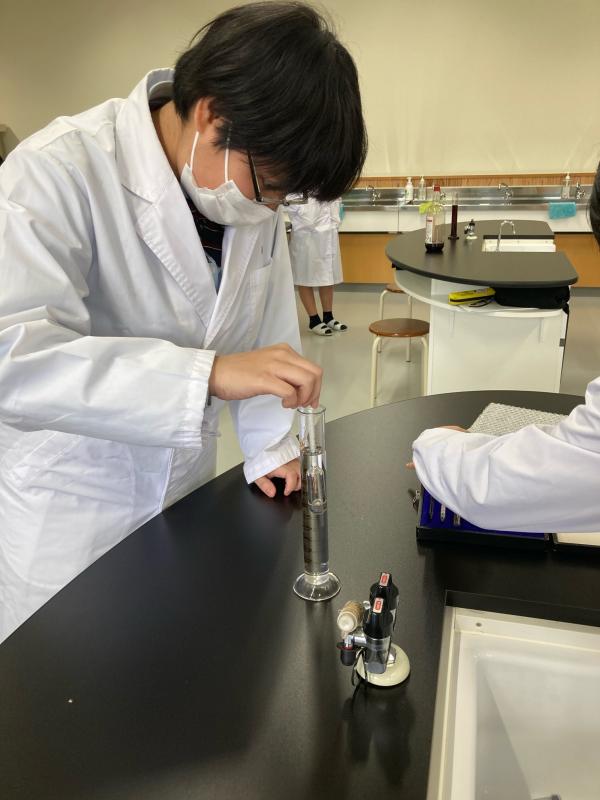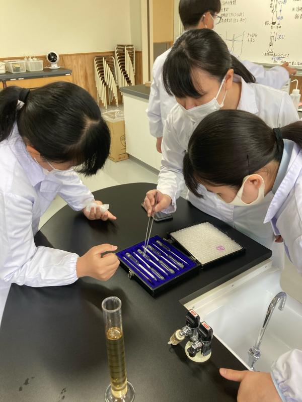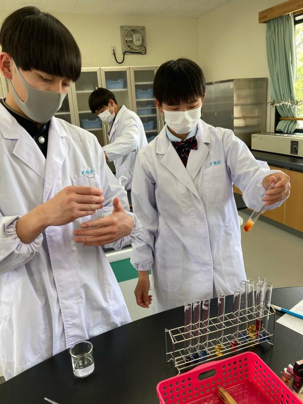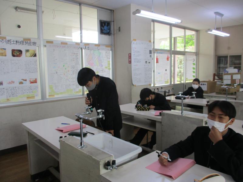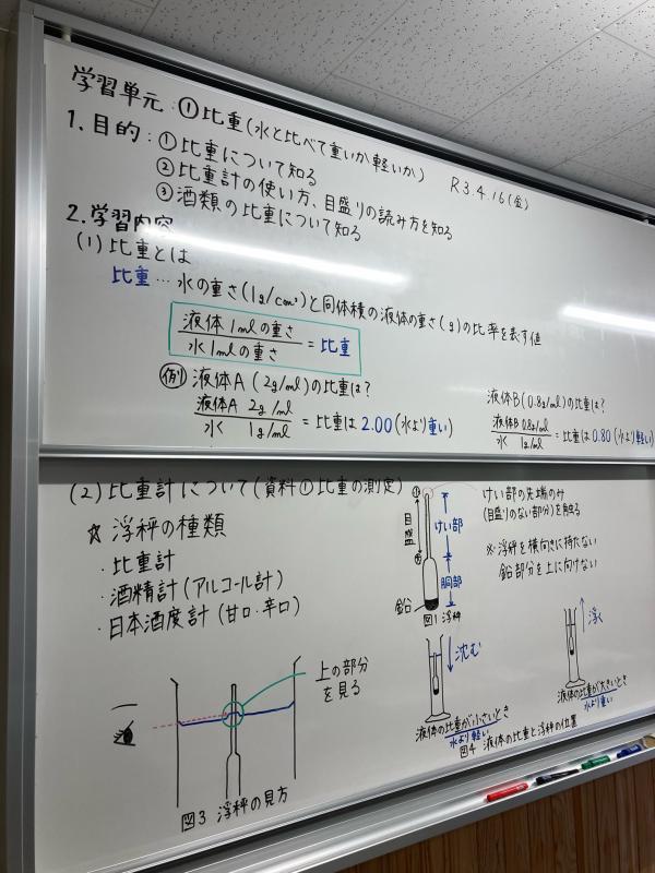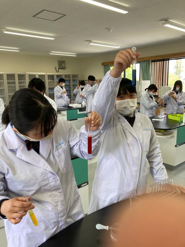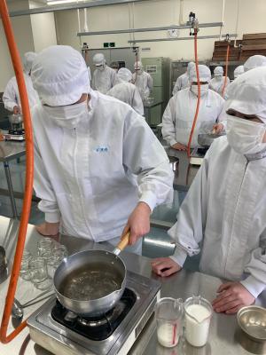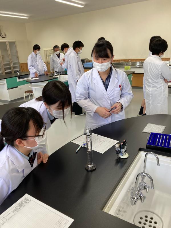先週の金曜日と本日、クラスの前半と後半に分かれて2時間ずつの計4時間、醸造、食品化学ともに3年生になり今年度初めての実験を行いました。