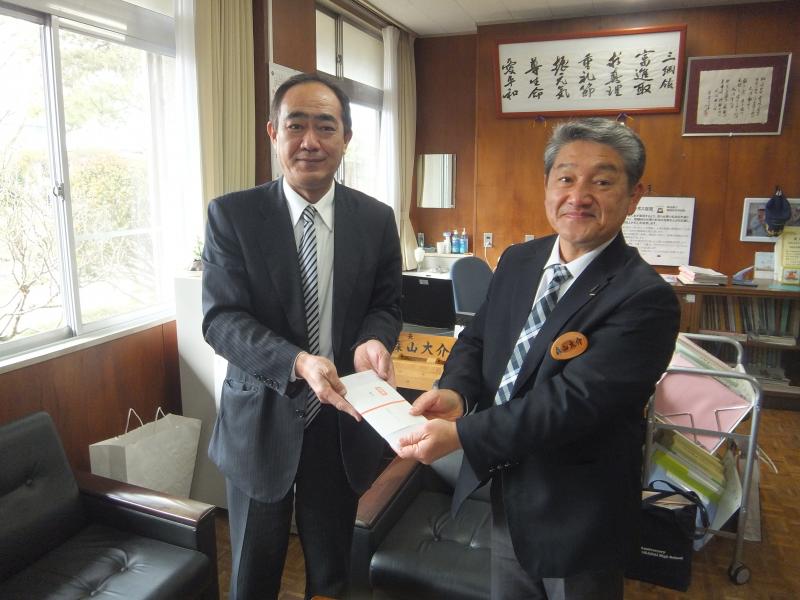 2月24日、弘済会熊本支部副支部長の鶴田憲平様におこしいただき教育研究助成金(スクールライブラリー助成)の交付式が行われました。 図書館の充実に活用させていただきます。ありがとうございました。