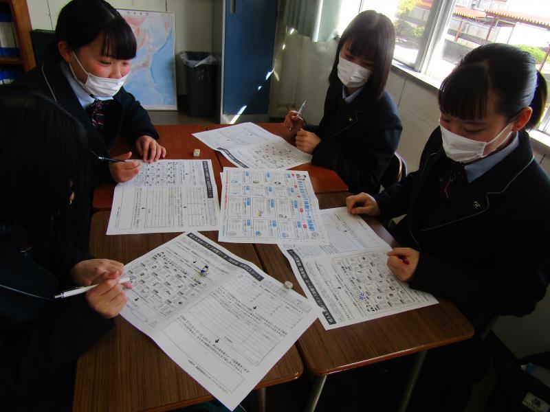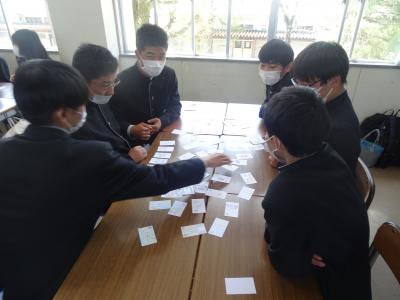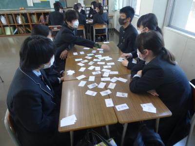 テーマは、先日行われた「現代社会」の研究授業で取り上げられた「人吉球磨地域に24時間営業のコンビニエンスストアーは必要である」で、8班に分かれた生徒たちは、休み時間も作戦を練るなど熱戦を繰り広げました。