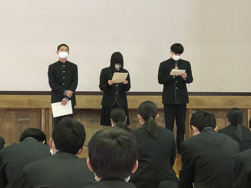 コロナ禍、豪雨災害の中、日々の進路活動に真剣に取組み確実な成果をあげてくれました。一人ひとりの進路目標を実現した3年生が進路に関するアドバイス、そして後輩の皆さんへのメッセージを語ってくれました。3年間の高校生活を有意義に過ごすために大いに参考になることでしょう。