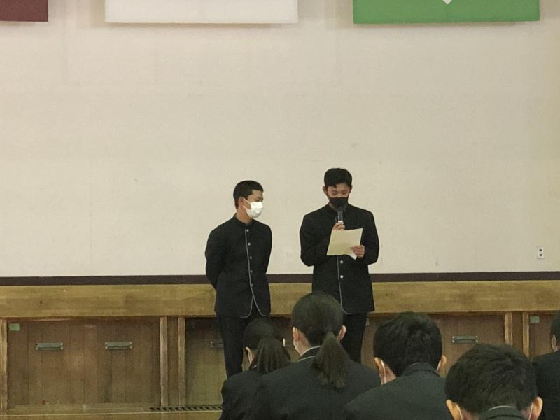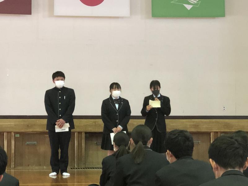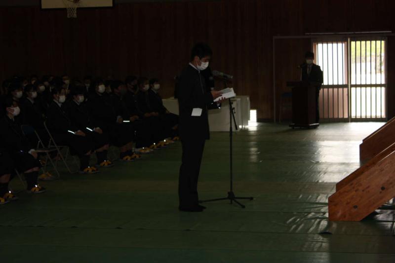 在校生代表送辞 現生徒会長が卒業生へ向けて感謝の思いを力強く伝えました。