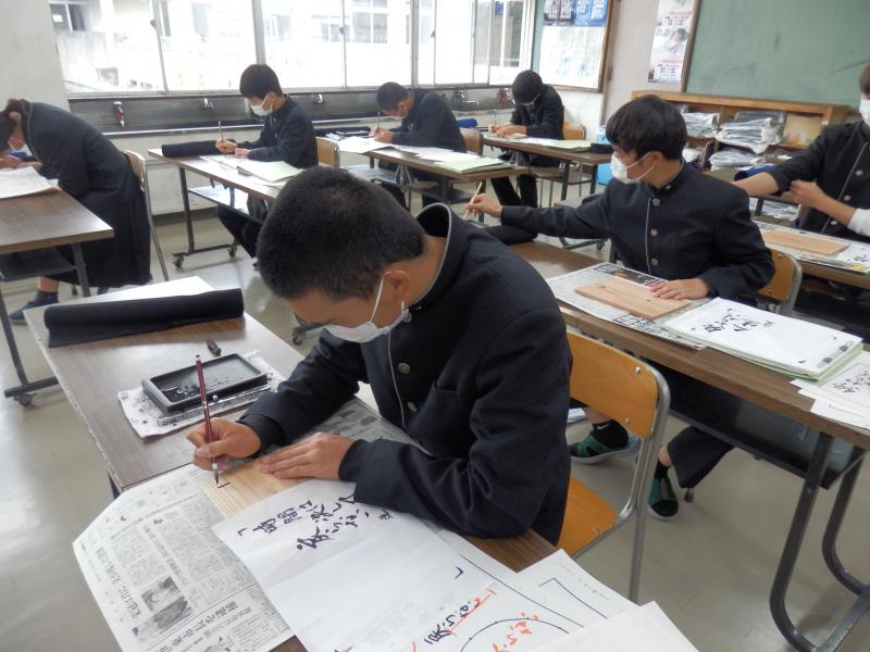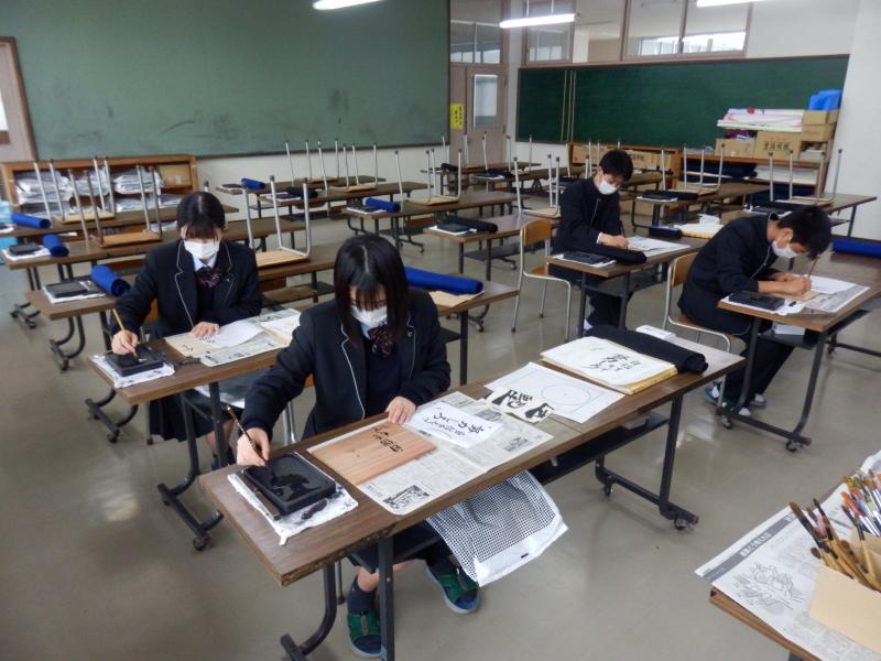 1年生の芸術科目は、音楽と書道から選択できます。今年度は、30名の生徒が書道を選択してくれました。