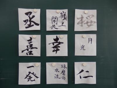 「自分も最初はこんな感じだったなー、この二年間で成長しました!」嬉しい一言でした。その三年生は、書道Ⅰ、Ⅱと2年間学んだ生徒です。書道の授業は三年生ではありませんが、自主的に作品展に応募したいと話をしに来てくれました。その行動力に驚きました。