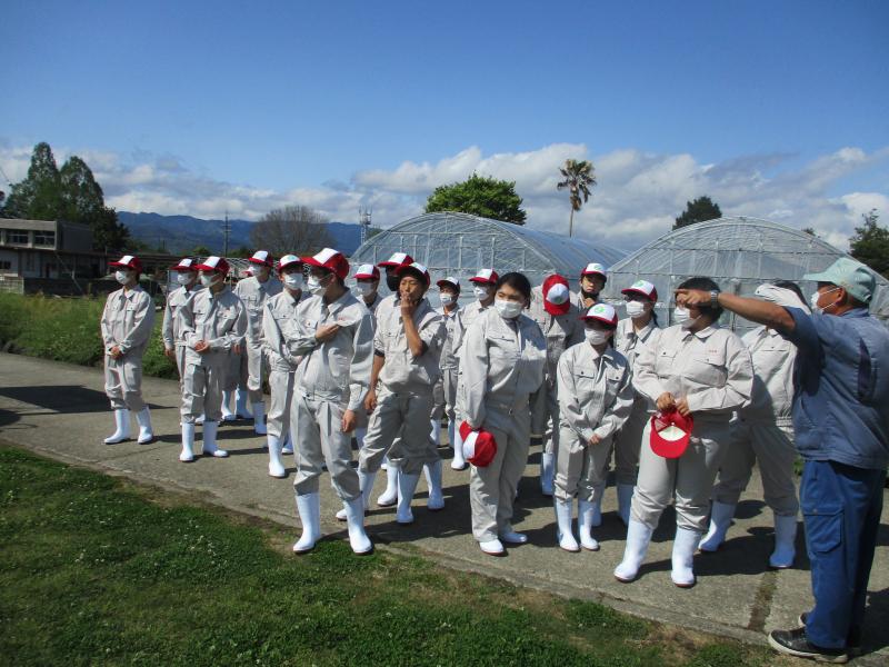 市岡様より実習の説明をいただきます。収穫の仕方やハウス内の温度は38度近くあるため、こまめな水分を取ることなど、高校生を気遣っていただきましたm(_ _)m