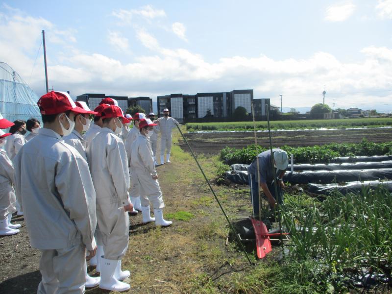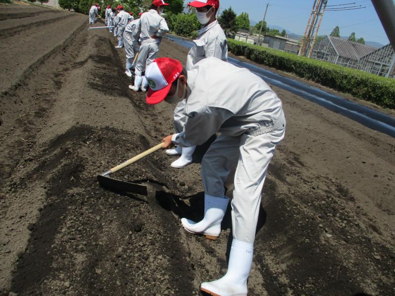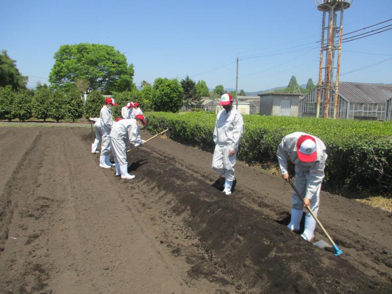 初めて鍬を使っての実習で戸惑いもありましたが、皆で協力して積極的に取り組むことができました。中には鍬を使い慣れた頼もしい生徒もいました。