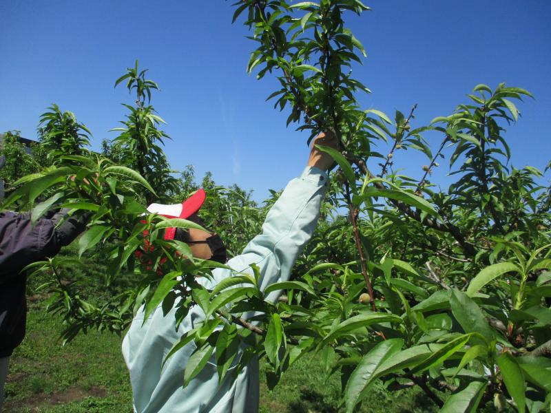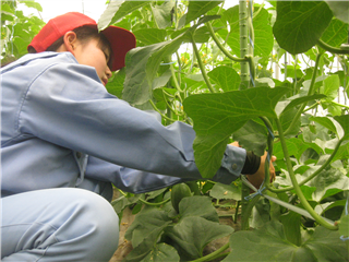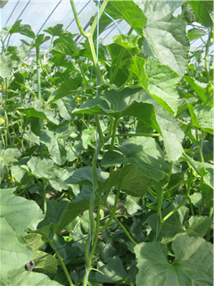 最後にアールスメロンの整枝です。大切な茎等を折らないように真剣です。これも良い物を作るためです。