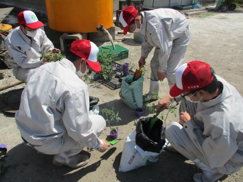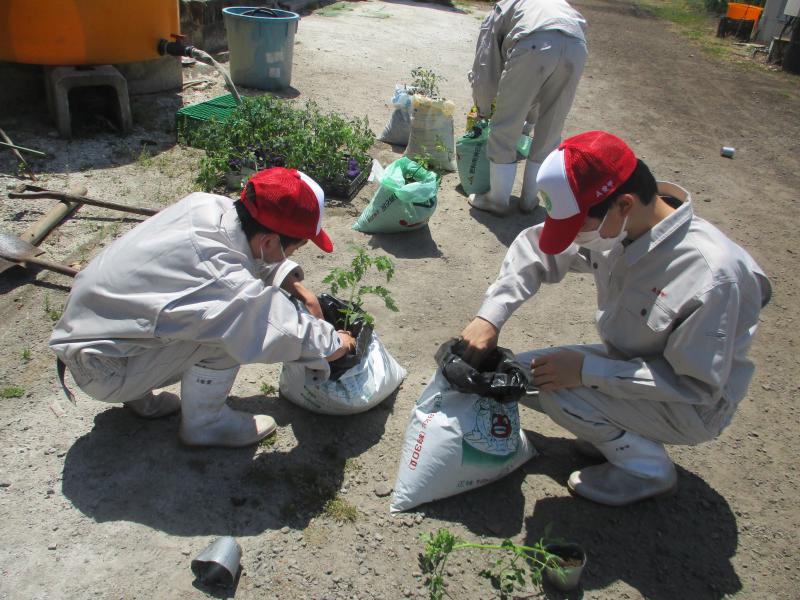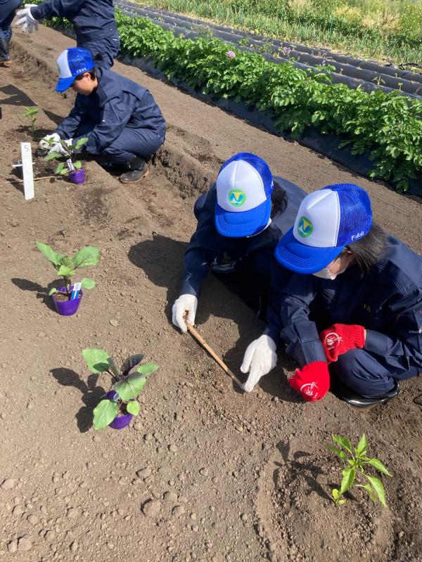 本日1限目農業と環境の授業でナス、ピーマンの苗の定植とスイートコーンの播種を行いました^_^