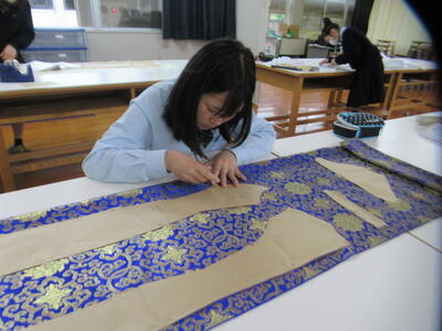 どの生徒も今まで扱ったことのない厚みのある布地やツルツル素材の布地に