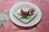今日は調理実習でクリームチーズ、生ハム等の食材を使っておしゃれな盛り付けを研究しました