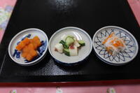 和食組は、人参の煮物、きゅうりと長芋の梅和え、なますをつくりました。かつらむきやねじうめなどの飾り切りも上手にできていました