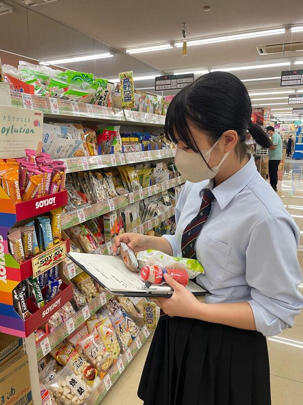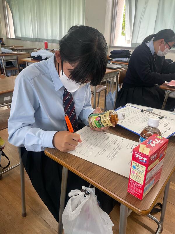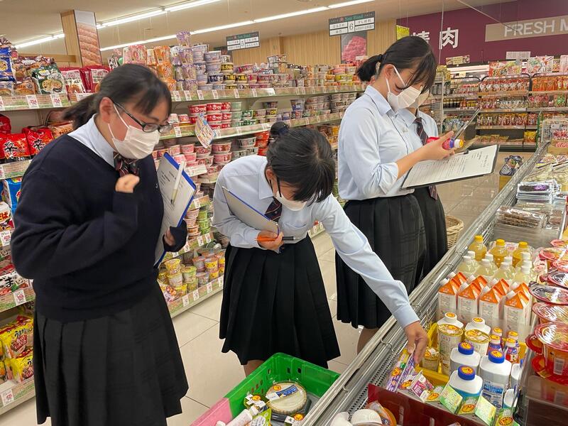 令和5年度も他学科の生徒が週に2時間総合選択Aの授業の中で食品製造を学んでいます今日は身近な保健機能食品について調べるために実際にスーパーまで行き現地調査をしました