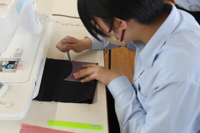 今日は、しつけ糸を使った仮縫いに挑戦する生徒が多くいました