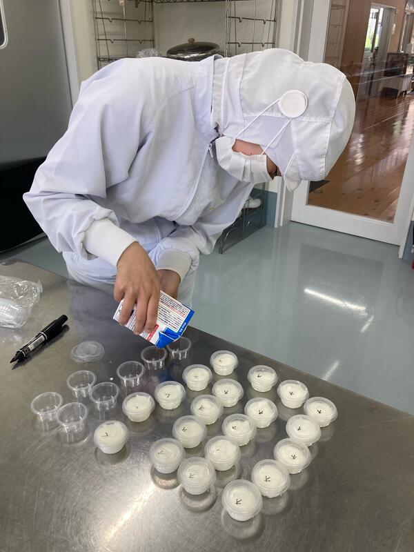 食品微生物の実験が本日よりスタートしました空中落下菌採取のための培地の作成をしました