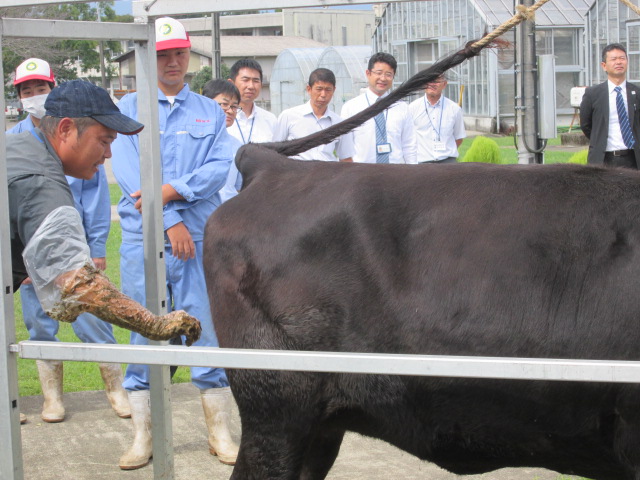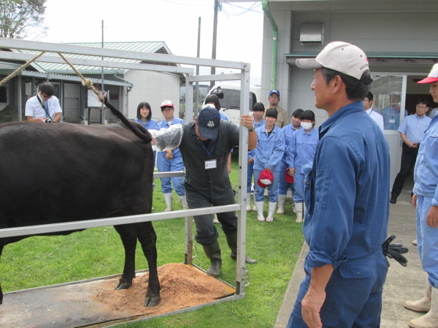 生産科学科・園芸科学科1年2組の「総合実習」の「牛の繁殖とその実際」