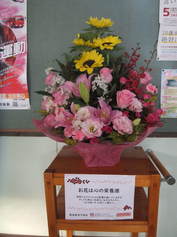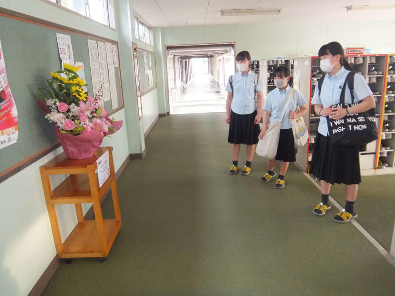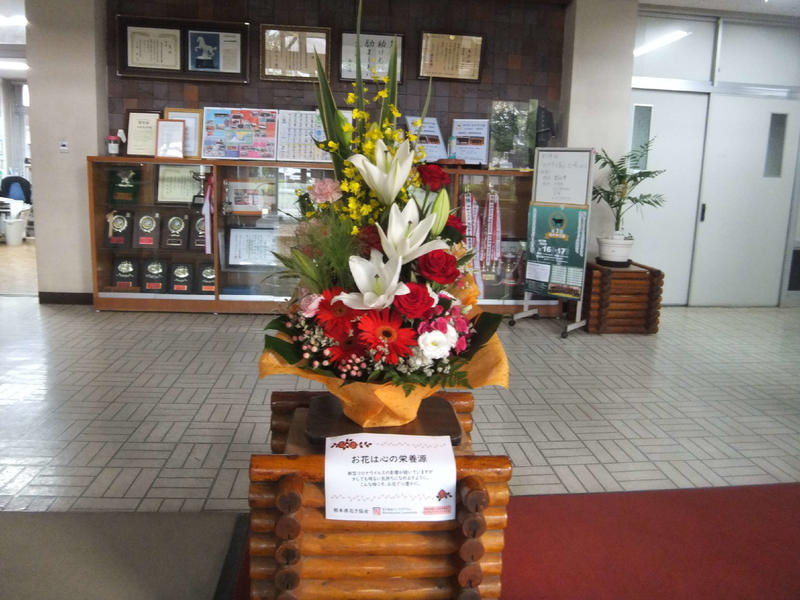 6月8日、熊本県花き協会様から素敵なプレゼントをいただきました。豪華なお花を2鉢。早速、玄関と生徒昇降口に飾りました。生徒たちや来校者の皆さんも明るき気持ちになり、頑張る力が出てくることでしょう。