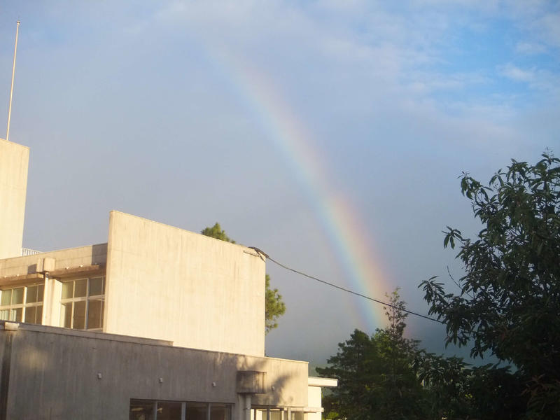 6月9日の19時頃に大きな虹が出ていました。雨上がりに現れる虹。やまない雨はないと言いますがコロナを乗り越えた後にはきっと綺麗な光がさすことでしょう。