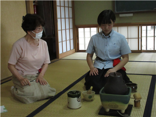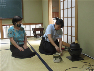 外部講師による裏千家を学ぶことができます。臨時休校があり、4ヶ月ぶりの