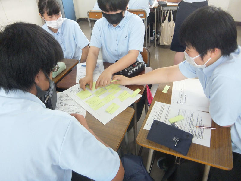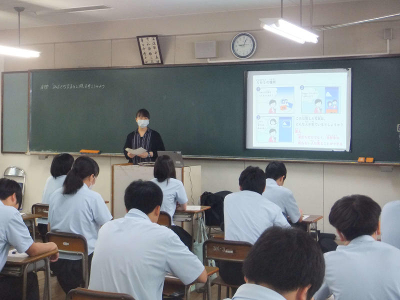 6月17日の人権教育LHRで、1年生は「言葉が与える『快』『不快』」をテーマに、相手がうれしいと感じる言葉と、嫌だなと感じる言葉について考えていきました。