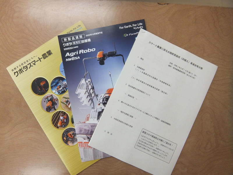 乾田直播や密苗栽培について説明を受けたほか自動運転機能付き田植機の実演を見させていただきました。