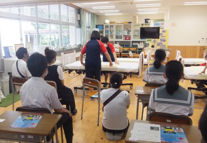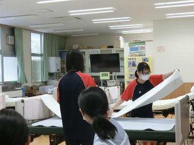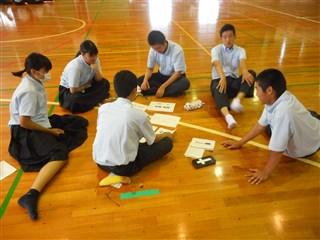 生徒同士の支え合いを目的に、毎年保健委員を中心とした研修が行われています。
