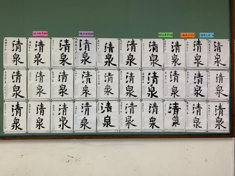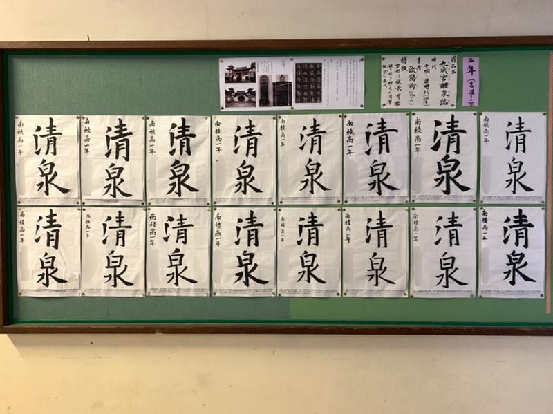 進路室前に展示してある書道部の作品が入れ替わりました。昨年度の県高校書道展で奨励賞を受賞した作品や今年度の県高文祭に学校代表作品として出展予定だった作品など力作揃いです。