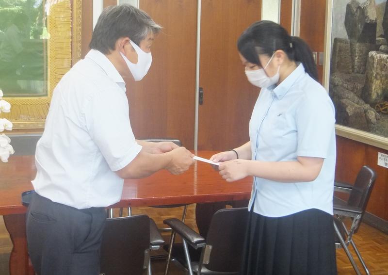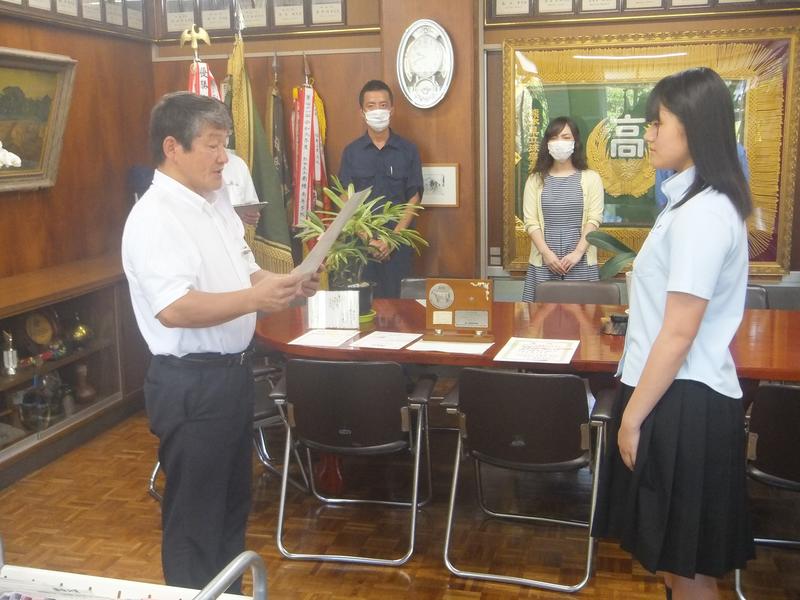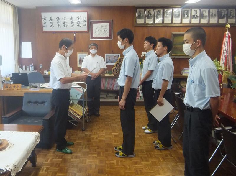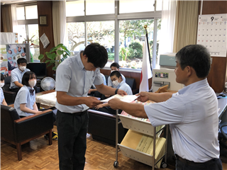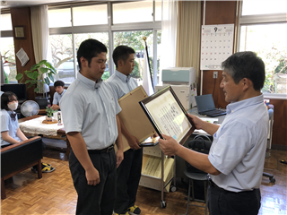8月31日、2学期始業式の表彰式が行われました。今回も新型コロナウイルス感染症対策として、校長室での開催となりました。受賞者は次の通りです。