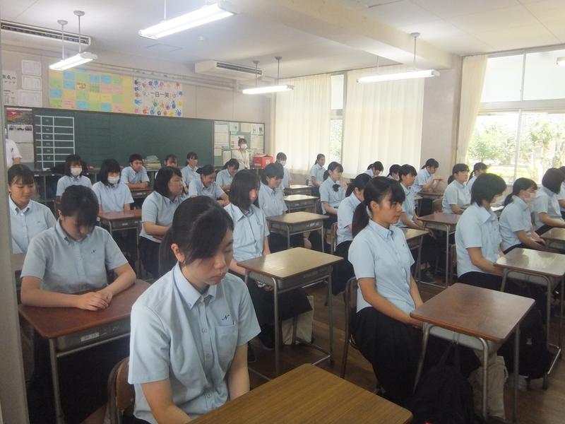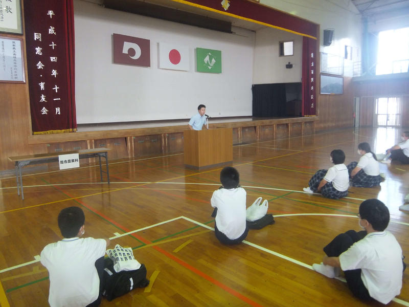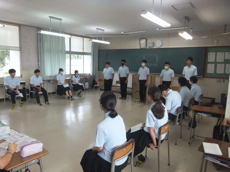 1学期に続き、2学期もコロナ対策のため校内放送での始業式となりました。また、2学期から着任なされた澤山先生の紹介や生徒会長からメッセージの読み上げもありました。