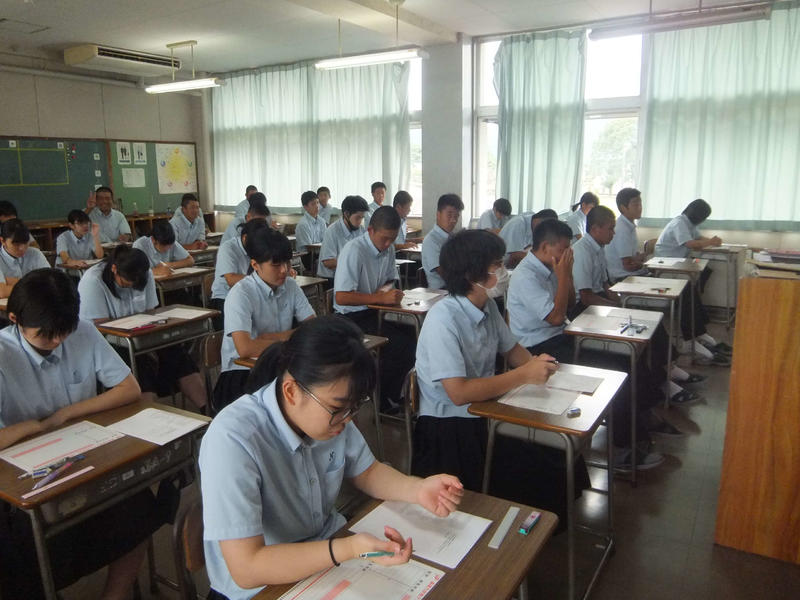9月1日、1・2年生は1限目から5限目まで基礎力診断テストでした。進学や就職に向けて必要な学力を知る良い機会になったと思います。今回の成績を受け止め、自分の目標とする学力を身につけらるよう学習習慣を見直しましょう。