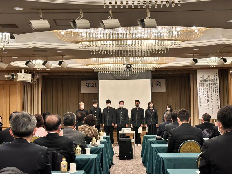 清流山水花あゆの里にて人吉球磨地区税務関係団体長連絡協議会の皆様へ本校で取り組んでいる雨庭の発表をしました