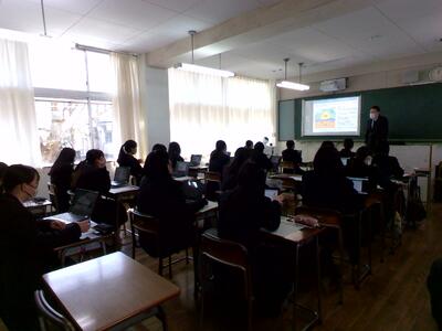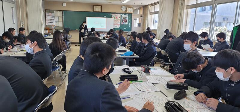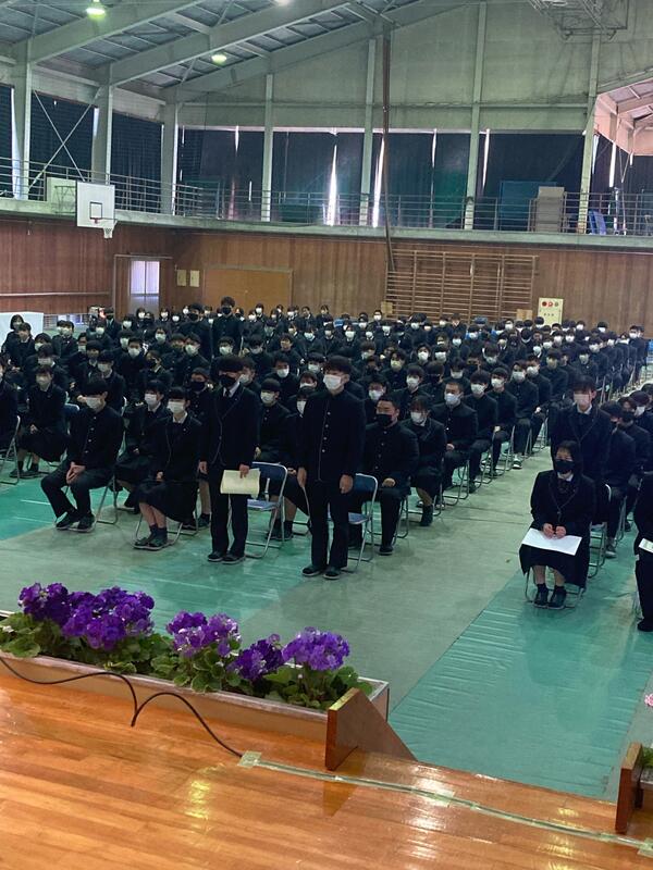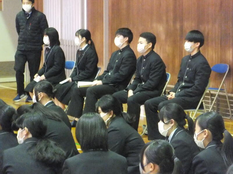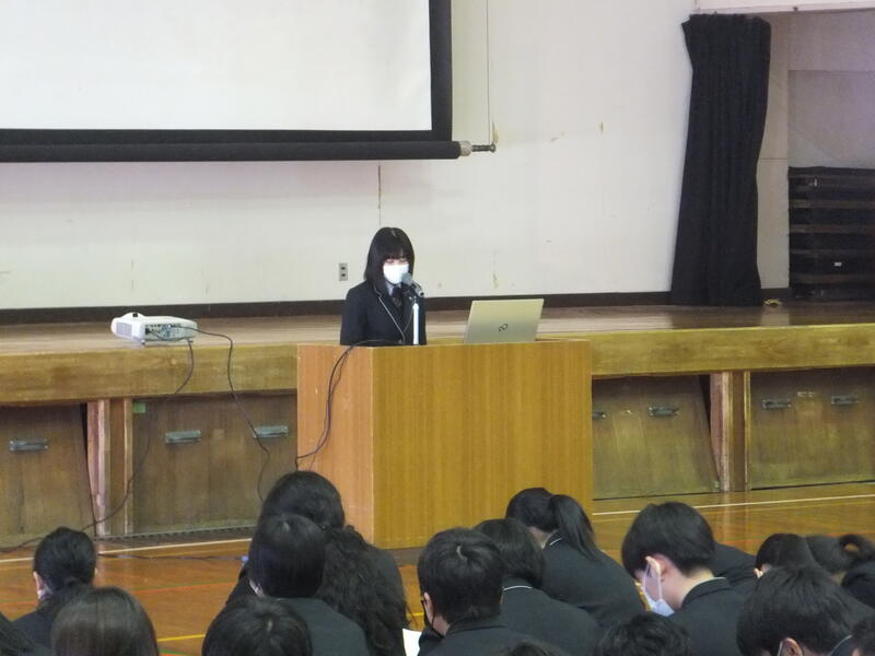 3月9日(木)⑤⑥限目、本校体育館にて、1年普通科、食品科学科、生活経営科、2年普通科の生徒が