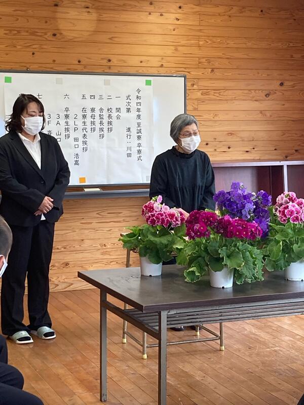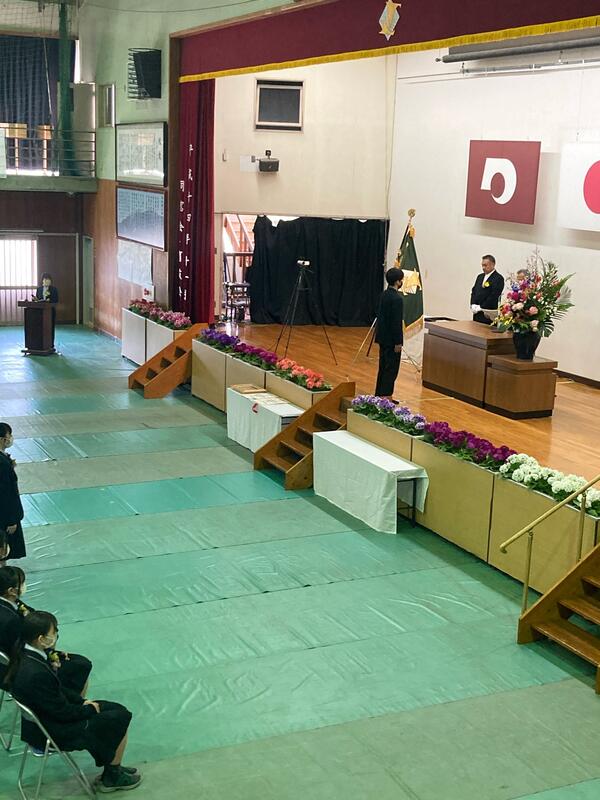 南稜の正面玄関には、いつもきれいな花が飾ってありますが、これは卒業式の壇上に飾った生け花です。卒業式から10日経ちましたが、まだまだきれいに咲いています。