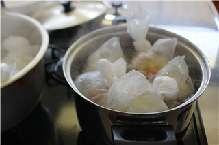 ポリ袋で米を炊いたり、カレーを煮たりしました