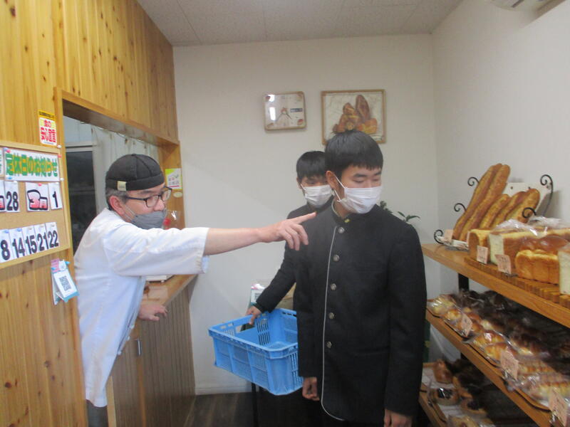 総合農業科2年植物コースでは南稜ブドウの販売促進と地域連携した農業の6次産業化モデル構築を目指し、生食でもおいしいピーオーネをレーズンに加工しています。そのレーズンをあさぎり町「パン工房」麦の音に、持参し商品化できないか相談しました。