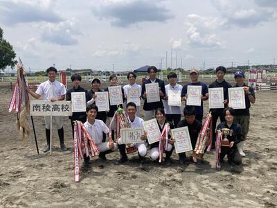 5月31日〜6月2日にかけて菊池農業高校馬術競技場にて県高校総体馬術競技が行われました。チームが一丸となり懸命に競技した結果、総合優勝を果たすことができました。創部30年を超える馬術部ですが、総合優勝は6度目になります。選手(人馬)の頑張りはもちろんですが、日頃から多大なるご支援をいただいている南稜高校馬術部後援会の皆様、横田徳二様をはじめ、応援していただいている皆さまなお陰です。本当にありがとうございました。