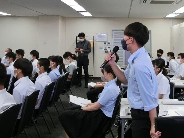 初めのうちは生徒たちはおとなしい様子でしたが、研修の終盤では積極的に質疑を行いました。