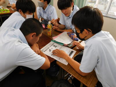 8月1日、熊本市内の会場に県内の専門高校生40人以上が集まり、グローバルチャレンジ海外オンライン研修が行われました。本校からは3年総合農業科の松﨑君、黒木さん、1年総合農業科の松永さん、西さんの4名が参加しました。
