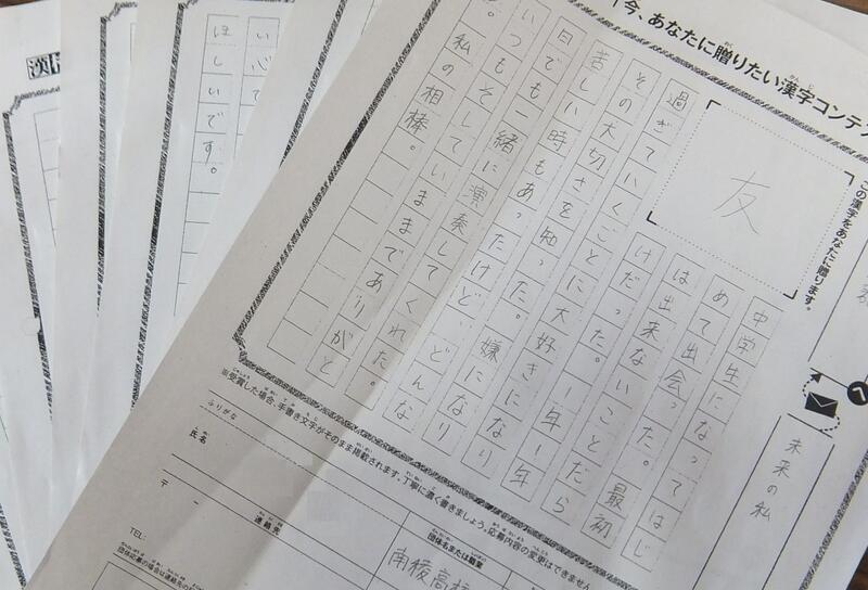 「今、あなたに贈りたい漢字コンテスト」に約130名の生徒たちが応募してくれました。